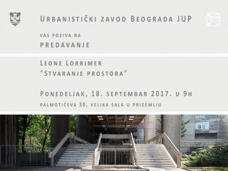 By Архитектонски факултет_Уредник on 13/09/2017/ 18.09. 2017. у 9.00, УЗБ / Позивамо Вас на предавање и радионицу: Леони Лоример (Леоне Лорример) – “Стварање простора” која ће се одржати у понедељак, 18. септембар 2017. у 9.00 сати, Урбанистички Завод Београда ЈУП, велика сала у приземљу. Улаз је слободан. Добродошли! -