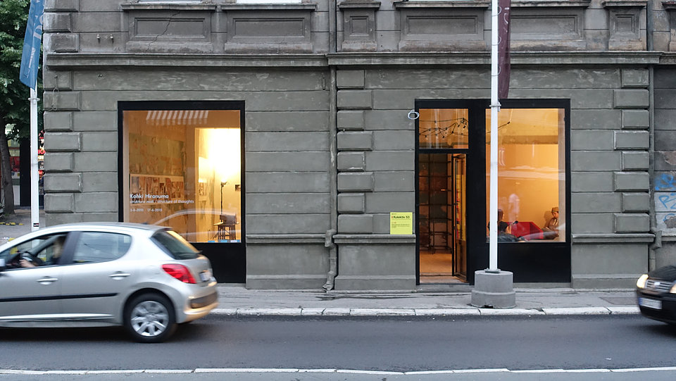 Izlagački prostor: prozor Galerije Kolektiv (zapremine 3m³) koji gleda na Karađorđevu ulicu. | Kolektiv arhitekata, Karađorđeva 53, Beograd