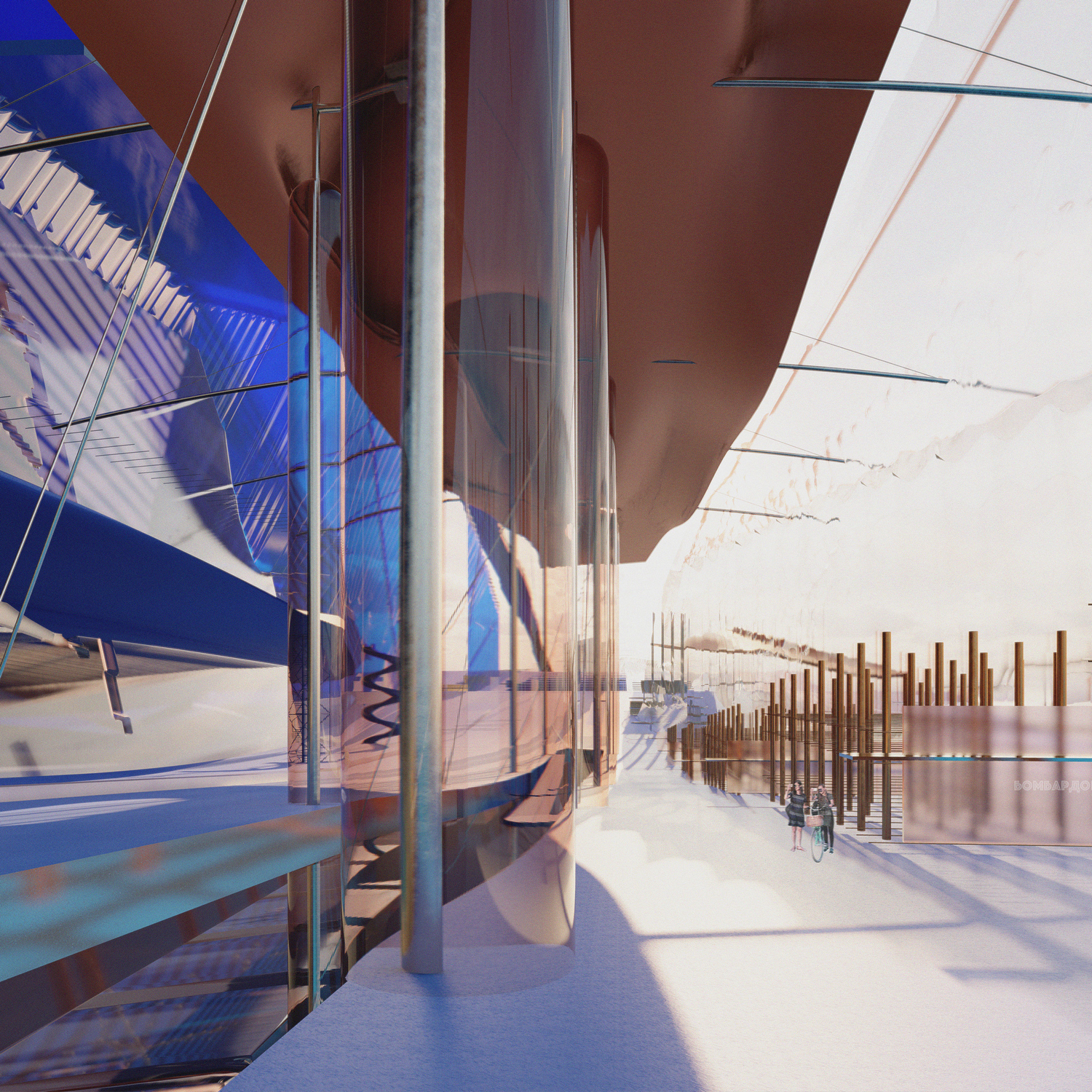Projekat simboličkog naziva “Antimemorijal”, baziran je na ideji arhitekture kao opomene i kritike, ali i čuvara sećanja naroda. U programskom smislu, radi se o muzejsko-edukativnom centru u kojem se pored izložbenih prostora nalazi i gradska biblioteka, medijateka, arhiv kao i sale za predavanja. Glavnu osu projekta čini perforirani kosi zid zariven u tlo koji obejkat funkcionalno deli na dve celine – introvertni izložbeni prostor, i prostor za edukaciju koji je okrenut ka Marini Dorćol. Forma objekta proizašla je iz koncepta premošćavanja razorenog tla koje preuzima ulogu otvorenog prostora za izložbe i kulturne manifestacije. Tri platoa na različitim visinskim kotama se tokom godine postepeno potapaju, i učestvuju u formiranju različitih prostornih ambijenata.