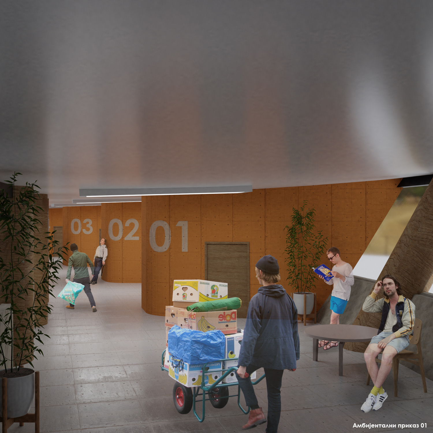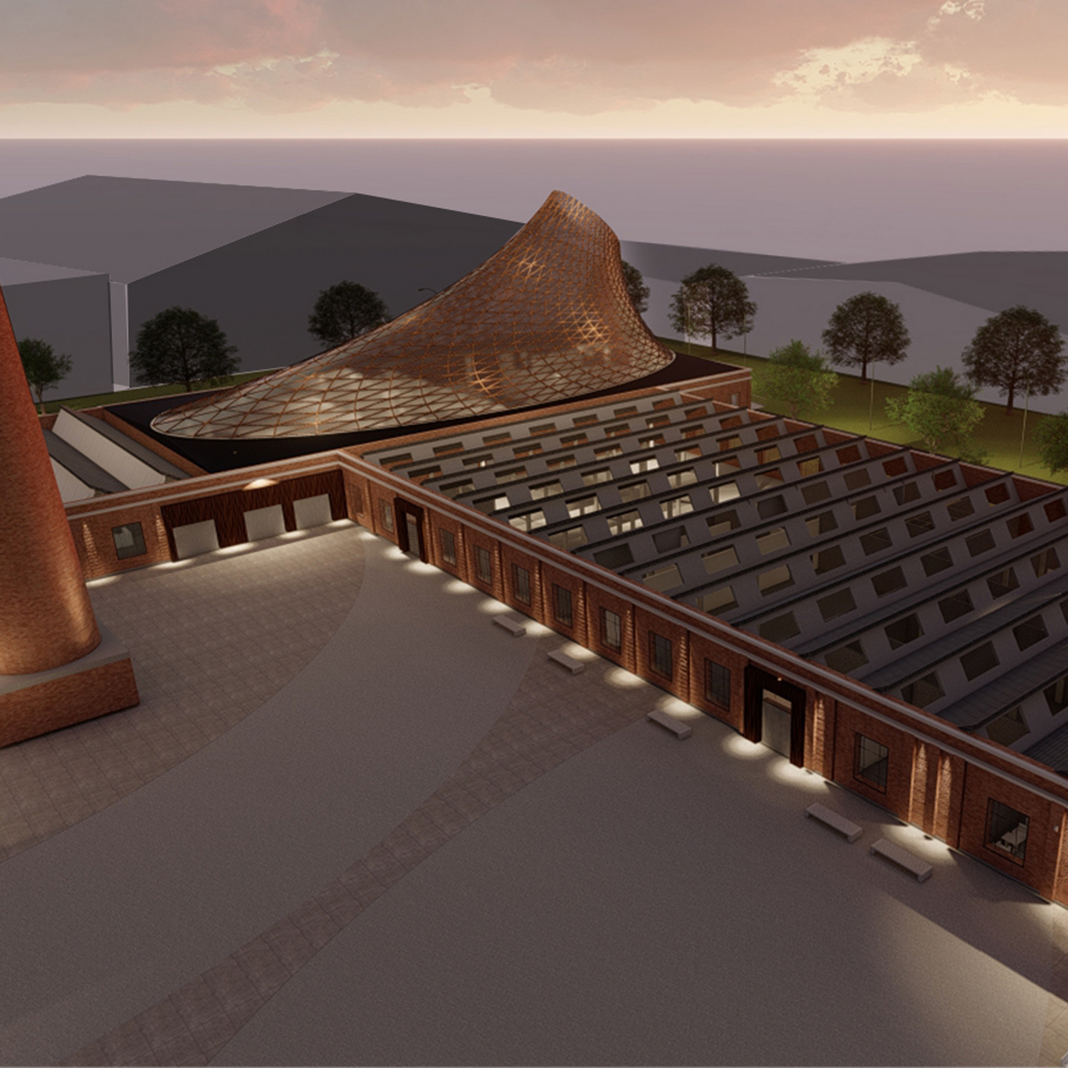 Projekat obnove kompleksa industrijskih hala u Kragujevcu, Srbija, s kraja 19. veka , podrazumeva kreiranje inovativnih sadržaja umetničkog karaktera i prostorno proširenje hala. Kompleks dobija novu namenu – galerijski prostor, multifunkcionalnu dvoranu, atelje i komercijalne sadržaje u vidu restorana i poslovnog prostora. U cilju što prilagodljivijeg funkcionisanja, dvorana je dvonamenskog karaktera – u prvom scenariju korišćenja služi kao montažno-demontažno gledalište, dok je u drugom scenariju gledalište uklonjeno, a slobodan prostor se koristi kao nastavak galerije. Forma nadograđenog objekta je amorfna, konstruisana u stilu gridshell struktura od lepljenog lameliranog drveta. Prostor ispod kupole je prazan, oslobođen nosećih stubova u enterijeru, stvarajući time pogodan ambijent za nastupe ili izložbe.
