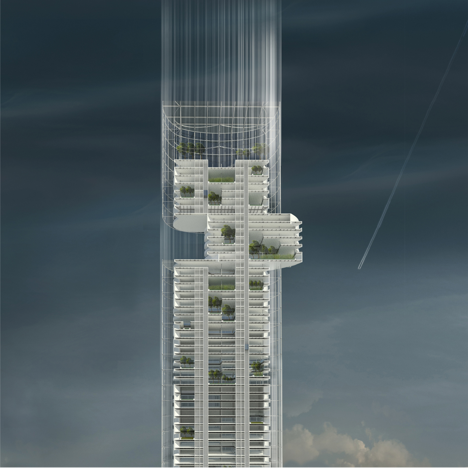 Rad je posvećen istraživanju oblikovanja i geometrije arhitektonskih formi u funkciji adaptiranja različitim klimatskim uslovima. U radu je primenjena uporedna analiza životinjskih staništa kroz pet tipova klimata i studija slučaja arhitektonskih objekata koji su projektovani u skladu sa klimatskim uslovima. Cilj je bio da se iskoriste prirodne zakonitosti koje životinje, odnosno ptice primenjuju prilikom izgradnje svog staništa u različitim klimatskim područjima. Koncept nebodera, koji je predmet master rada, nastao je na temelju eksperimenta i primenom metode uporedne analize životinjskih staništa i studije slučaja arhitektonskih objekata. Principi primenjeni na analiziraniim prmerima za adaptibilno klimatsko oblikovanje arhitektonski formi poslužili su kao osnov za oblikovanje nebodera.