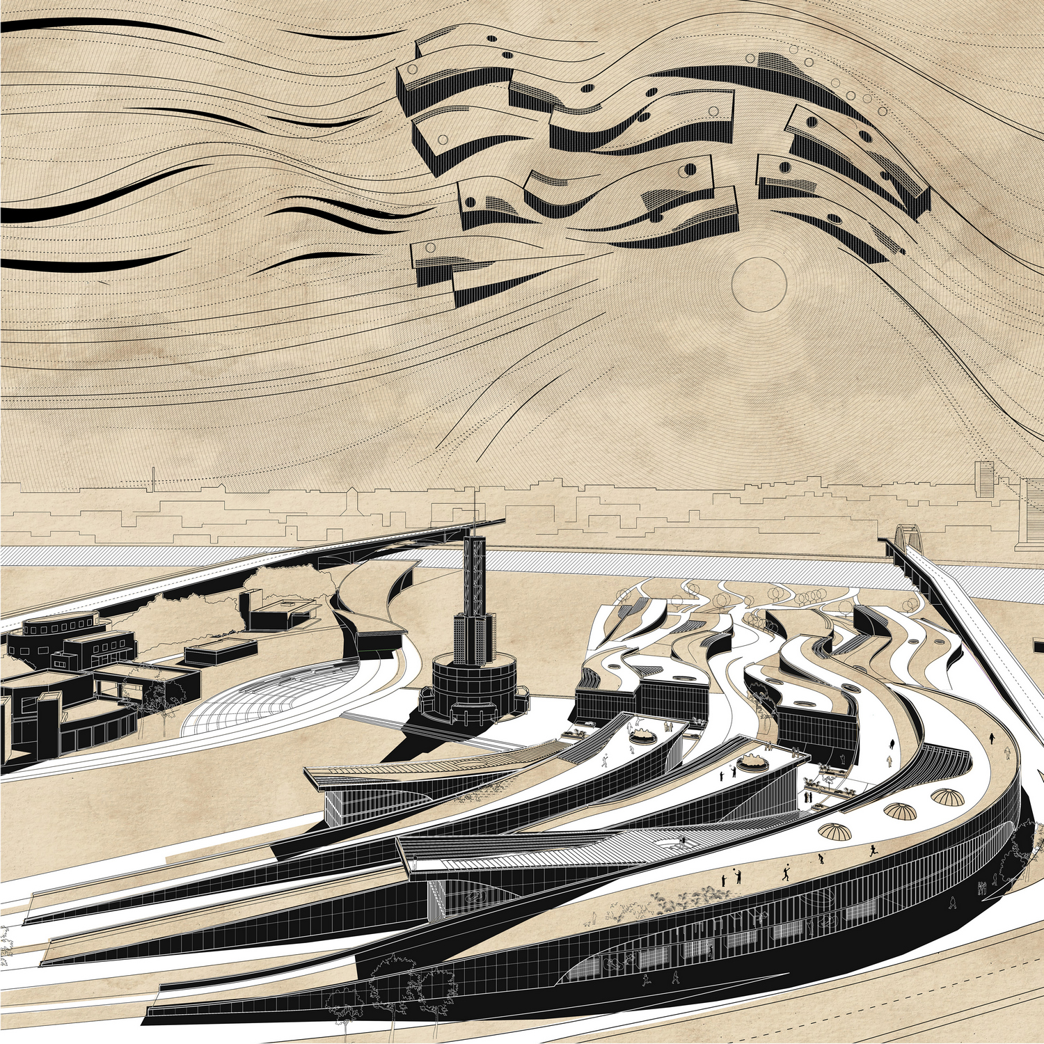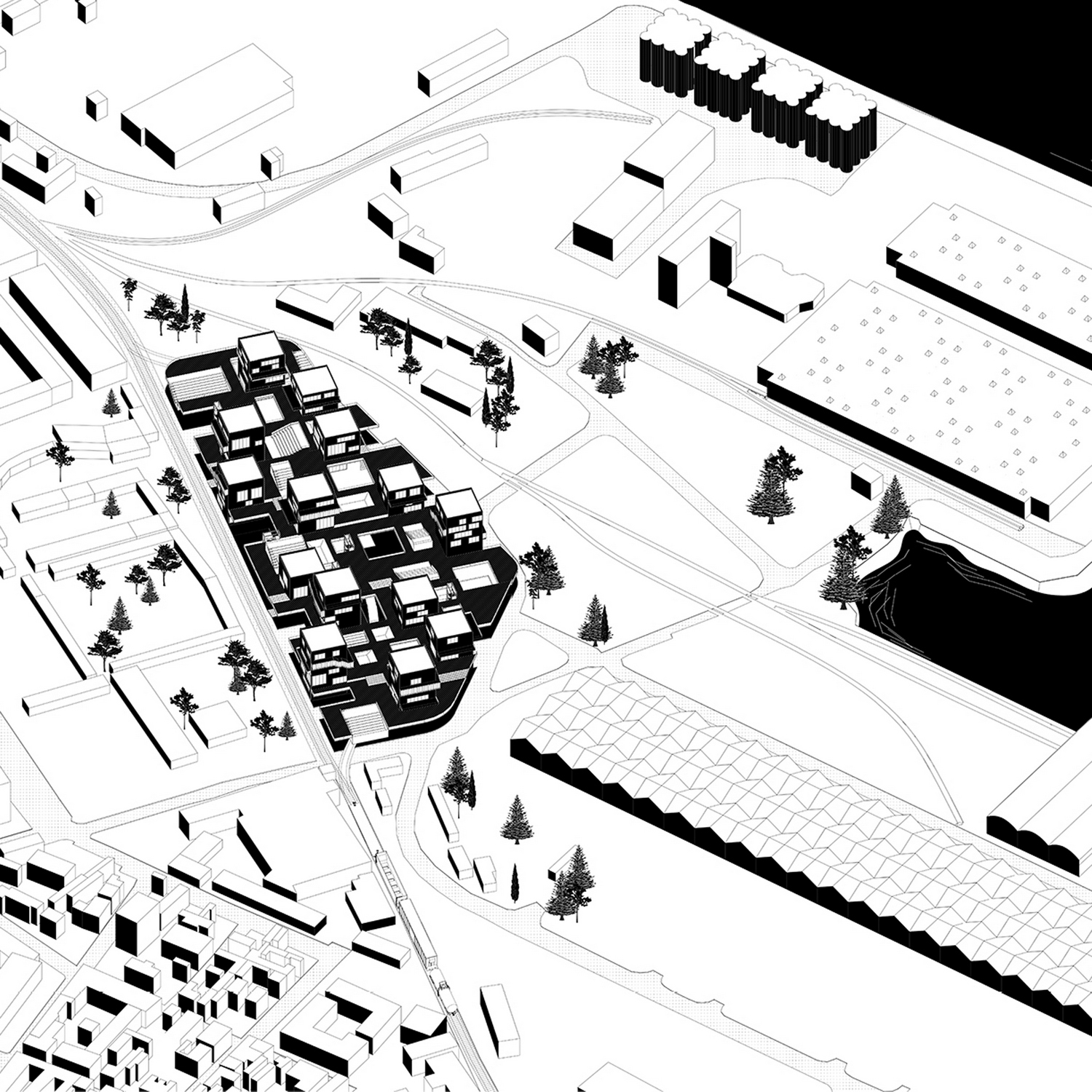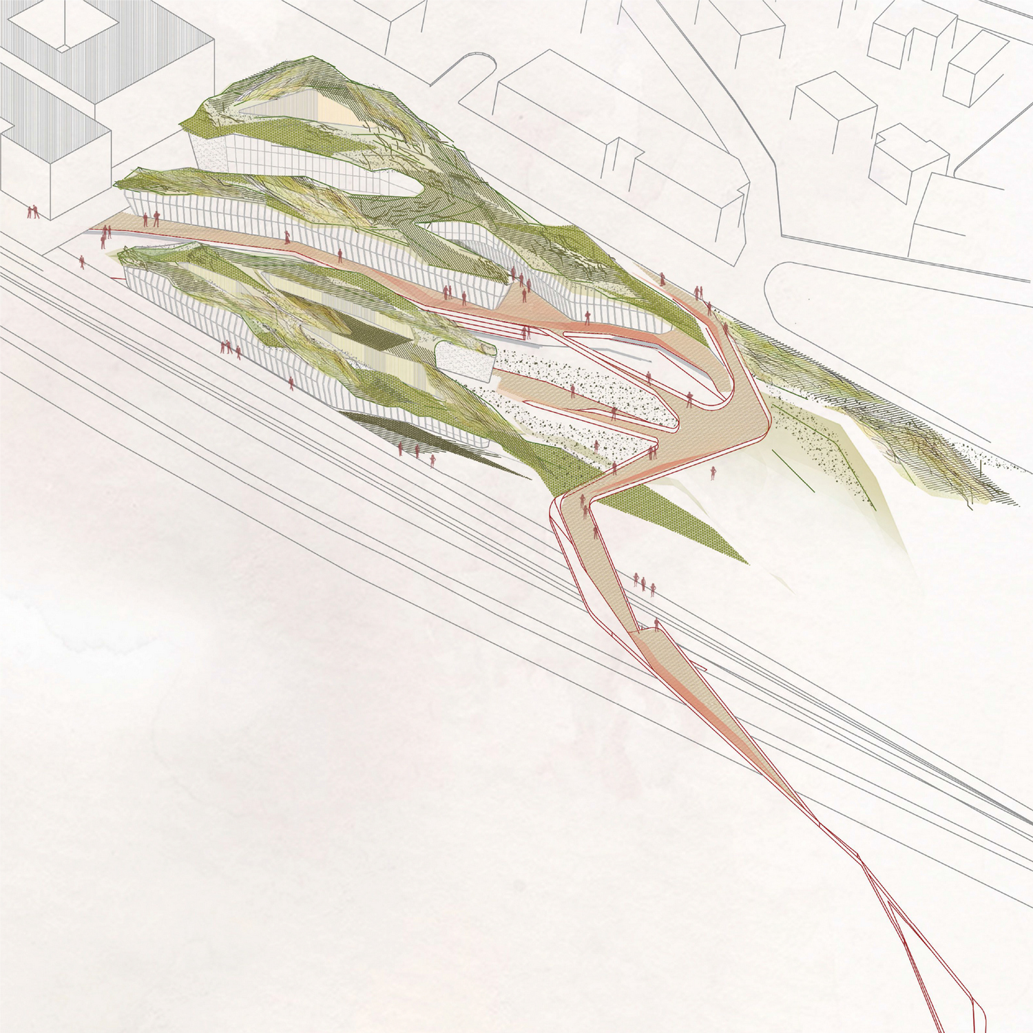Ideja ovog projekta nastala je posmatranjem odnosa postojeće strukture unutar i u bližem kontekstu lokacije. Odnosa ljudi prema istoj i njihovog kretanja, koje je nastalo kao odgovor na nedovoljno dobro organizovanu industrijsku zonu koja je tu nametnuta, na mestu nekadašnje stambene zone. Forma i struktura bloka rezultat je primene prethodno pomenutih analiza,pri čemu teren dobija dodatne sadržaje i postaje sastavni deo objekta ne ometajući kretanje ljudi, omogućivši pritom da prirodni,postojeći tokovi definišu njegovu strukturu i formu.