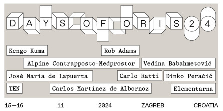 By Архитектонски факултет on 24/10/2024Међународни архитектонски фестивал Дани Ориса 24 одржаће се 15. и 16. новембра 2024. године у Концертној дворани Ватрослава Лисинског у Загребу. -