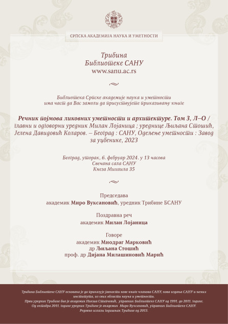 Трибина Библиотеке САНУ – Речник појмова ликовних уметности и архитектуре. Том 3, Л–О