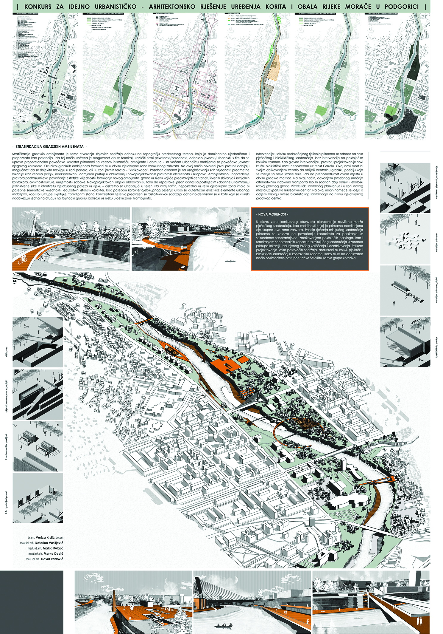 1st award / COMPETITION FOR CONCEPTUAL URBAN AND ARCHITECTURAL DESIGN FOR THE DEVELOPMENT OF THE MORAČA RIVERFRONT IN PODGORICA / Asst.prof. Dr. Verica Krstić, Dipl.Eng.Arch., Katarina Vasiljević, M.Arch., Matija Bulajić, M.Arch., Marko Dedić, M.Arch., David Radović, M.Arch.; University of Belgrade – Faculty of Architecture