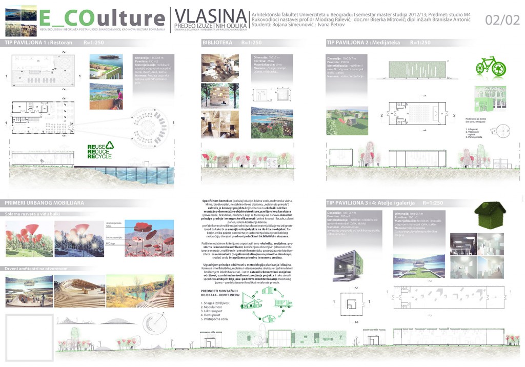 ментори: доц. мр Бисерка Митровић, проф. др Миодраг Ралевић, Бранислав Антонић, Универзитет у Београду – Архитектонски факултет