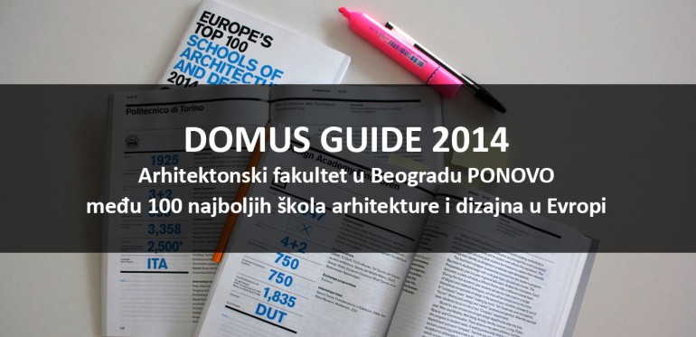 Univerzitet u Beogradu – Arhitektonski fakultet ponovo je svrstan među sto najboljih škola arhitekture i dizajna u Evropi za 2014. godinu, na listi koju je priredio italijanski magazin za arhitekturu „Domus“.