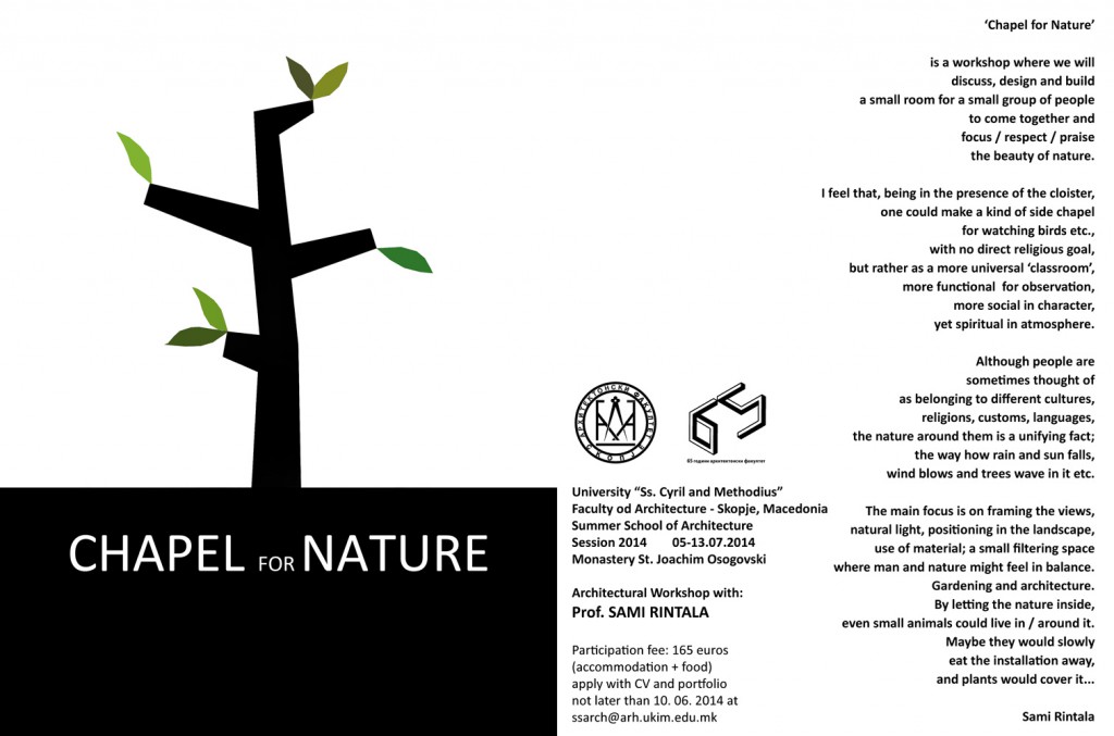 Tema ovogodišnje Letnje škole je KAPELA ZA PRIRODU (CHAPEL FOR NATURE). Gostujući predavač radionice Letnje škole je prof. Sami Rintala.
