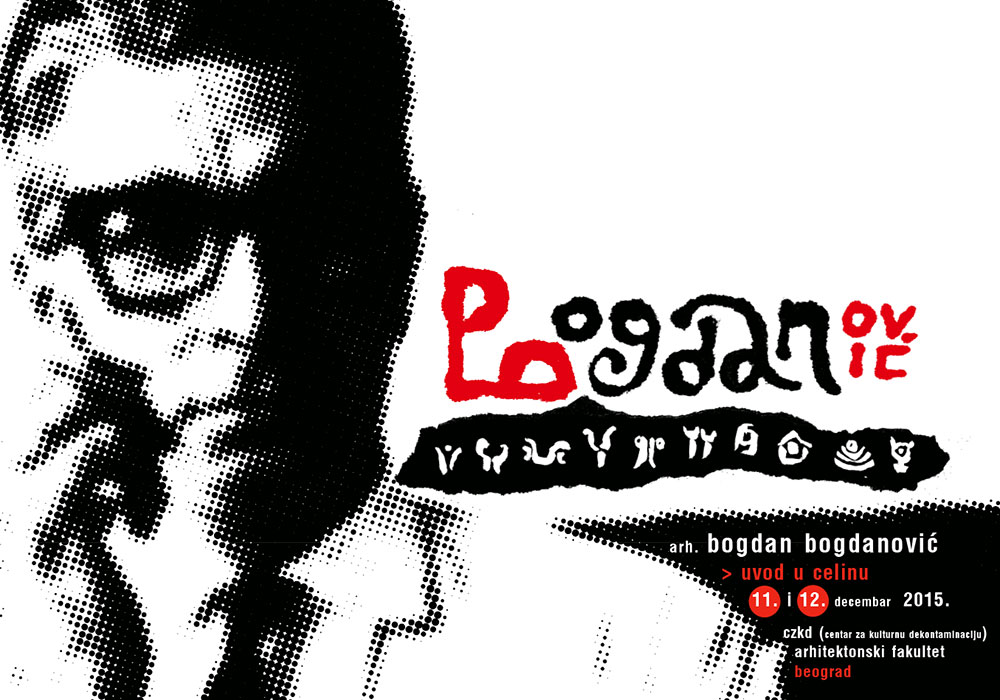 У Центру за културну деконтаминацију, простору, духу места, коме се Богдановић враћао, разговаћемо о свестраности Богдановићевог стваралаштва, а у сарадњи са студентима докторских студија и дипломцима Архитектонског факултета Универзитета у Београду, на Архитектонском факултету ћемо пробудти Нову школу архитектуре. Позивамо вас да започнемо путовања на места стварања, играња, критичког, и пре свега другачијег мишљења, чија вредност се огледа у културном наслеђу које не престаје да буде извор инспирација и идеја.