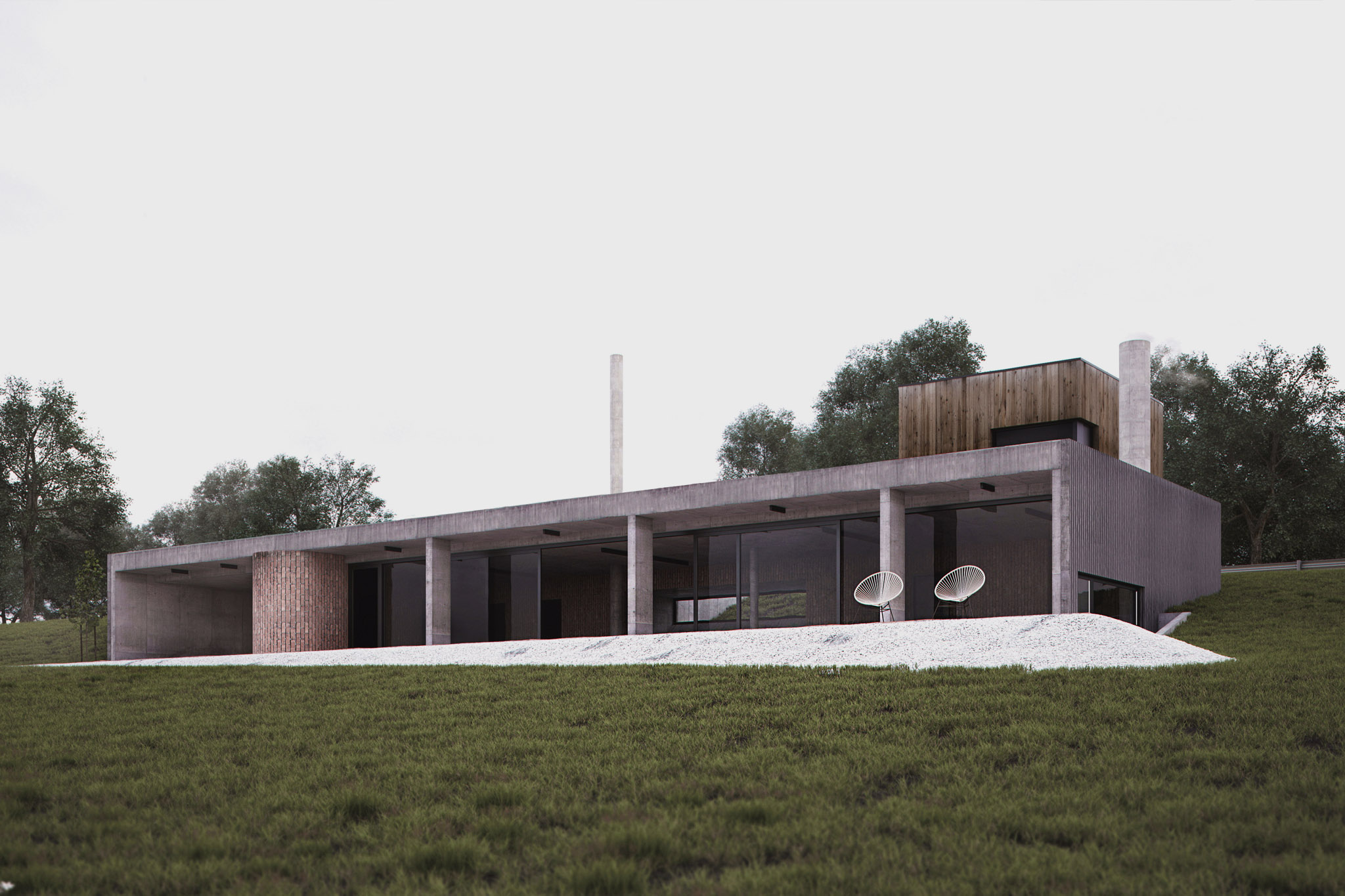 This project exemplifies a new vision of residential architecture for the natural environment. Unlike most contemporary structures, the work succeeds at being nonintrusive to the surrounding environment. The interior provides for comfortable stays inside well planned rooms, while the outside fascinates with a simplicity of forms, — finished with materials appropriate to the natural setting. The impressively restrained and planar house structure is counterbalanced with a semicircular rounded wall at the second level, providing a dose of extravagance to this hardly visible building. Its impeccable, ageless elegance is far from the overstated aesthetics of proliferating current media. The concept of a partly in-ground contained home exhibits an ecological awareness and the related efficiency that transpires from it. The convincing and well-designed presentation materials serve to strengthen a successful project.