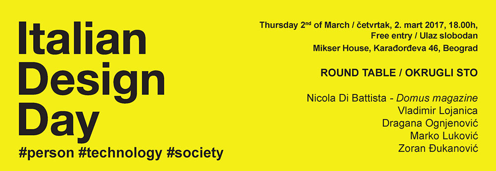 Povodom prvog izdanja Dana italijanskog dizajna Italijanski institut za kulturu u Beogradu organizuje okrugli sto o savremenom dizajnu u “Mikser hausu”, mestu koje potpomaže razvoj kreativnih talenata i nudi vidljivost profesionalcima sa Balkana.
