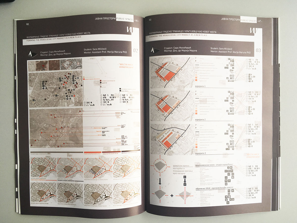Finalni studentski radovi su individualni integralni urbani projekti nastali razradom izabranih pojedinačih mera definisanih u “Strategiji integralnog urbanog razvoja centralne gradske zone Kragujevca”. Predstavljaju završnu fazu izrade master rada, pored master teze i radionice sa konsultantskim timom stručnjaka iz oblasti urbanizma, predstavnika najrelevantnijih institucija u Srbiji kao što su Ministarstvo građevinarstva, saobraćaja i infrastrukture, Institut za arhitekturu i urbanizam Srbije , JP “Urbanistički zavod Beograda”, Inženjerska komora Srbije, Direkcija za urbanizam Kragujevac i GIZ/AMBERO-ICON Beograd.