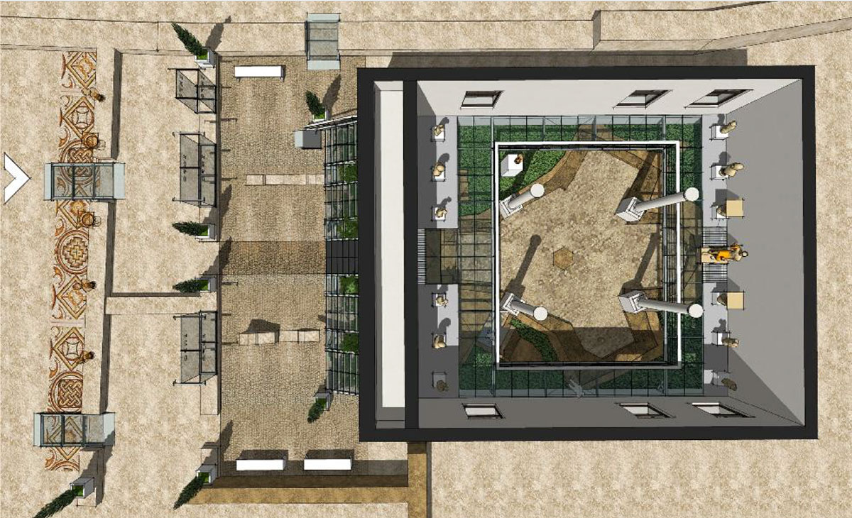 Predloženo rešenje stavlja u jezgro događaja arheološki nalaz dela kompleksa Medijane kao i najvredniji pokretni materijal. Adaptacija unutrašnjeg prostora zgrade Muzeja, ocrtava odnos današnjeg sistema vrednosti prema istorijskom nasleđu. Uspostavljaju se dve prostorne ravni i to: ravan memorije i ravan sadašnjosti koje su, svaka na svoj način, oličene fizičkim strukturama.