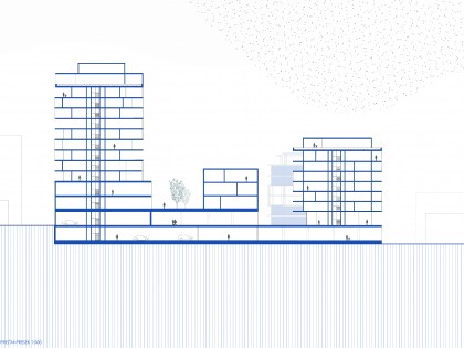 Podium sa slobodnostojećim objektima kao urbana forma, savladava teren u padu koristeći kaskadne platoe…