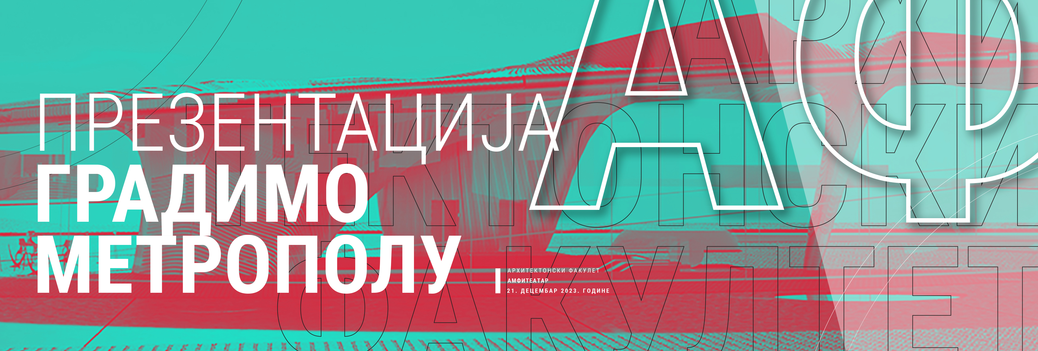 U četvrtak, 21.12.2023. na Arhitektonskom fakultetu u 12.00 časova biće održana prezentacije projekta izgradnje beogradskog metroa „Gradimo METROpolu“ za studente i stručnu javnost. Događaj organizuje JKP „Beogradski metro i voz“ u saradnji sa Arhitektonskim fakultetom u cilju unapređenja struke, inovacija i tehnološkog razvoja i većeg uključivanja akademske zajednice u projekat izgradnje beogradskog metroa.