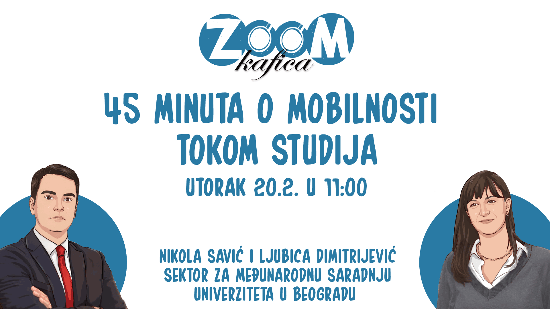 Pridruži nam se na Zum kafici koju organizujemo u utorak, 20. februara u 11h, tokom koje će biti predstavljeni i konkursi za mobilnost trenutno otvoreni za studente Univerziteta u Beogradu. Obavezno poseti mobion, saznaj više o aktuelnom konkursu https://mobion.bg.ac.rs/erasmus+/open-calls
