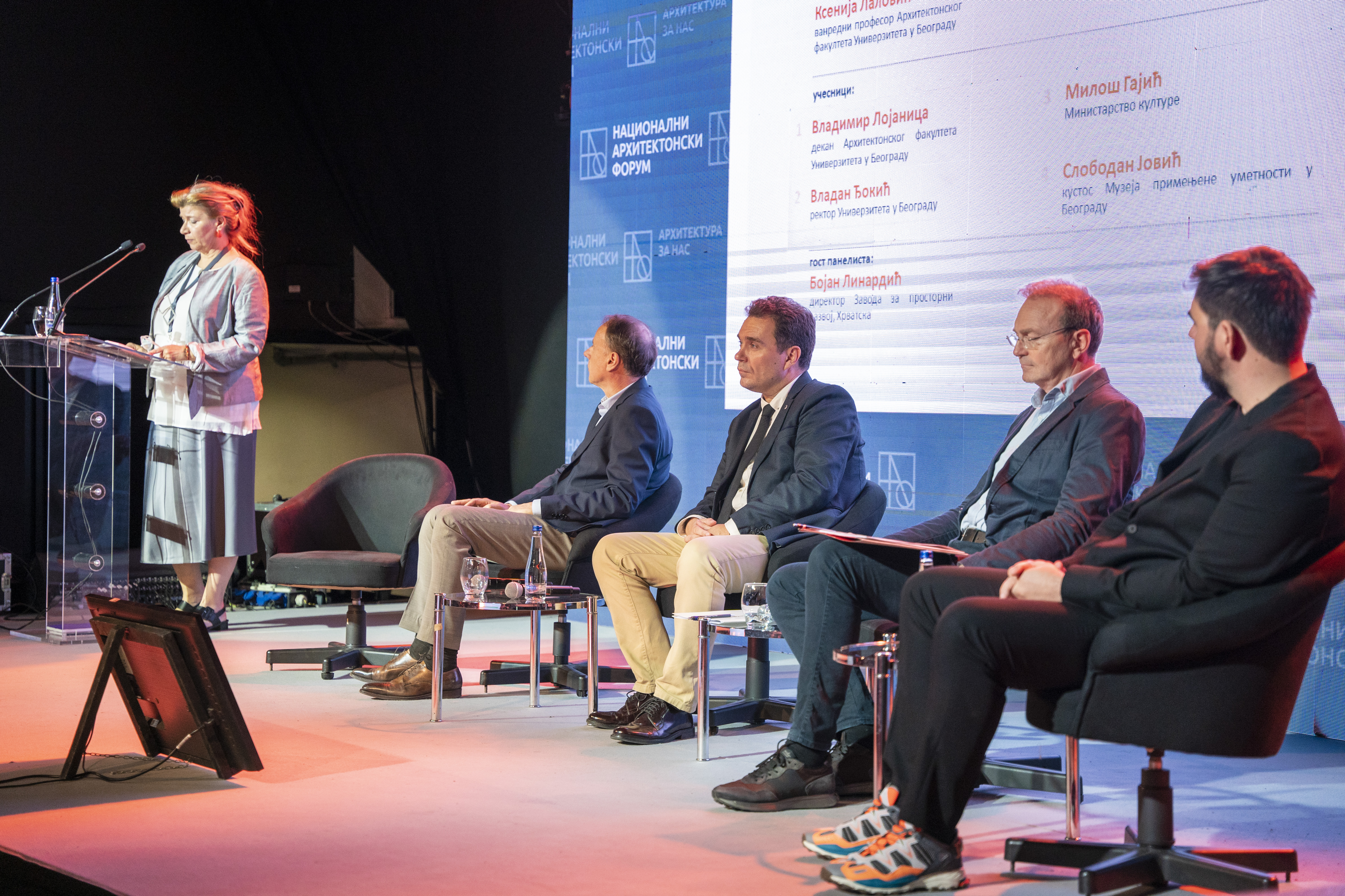 Održan je prvi Nacionalni arhitektonski forum u Domu Omladine 28.maja 2024. godine. Na ovom događaju su se razmatrale teme značajne za razvoj arhitektonske prakse, politike i edukacije, u skladu sa Nacionalnom arhitektonskom strategijom (NAS). Na Forumu su predstavljene osnovne ideje, vizije i mere NAS, koju je usvojila Vlada Republike Srbije 1. juna 2023. godine na predlog Ministarstva građevinarstva, saobraćaja i infrastrukture. NAS predstavlja dokument kojim se u Srbiji prvi put strateški utvrđuje arhitektonska politika i na celovit način određuje pravac delovanja u cilju razvoja i unapređenja kvaliteta arhitekture i građene sredine. Na Forumu su predstavljene i teme vezane za Zakon o visokokvalitetnoj arhitekturi Španije, kao i Arhitektonske politike u Evropi.