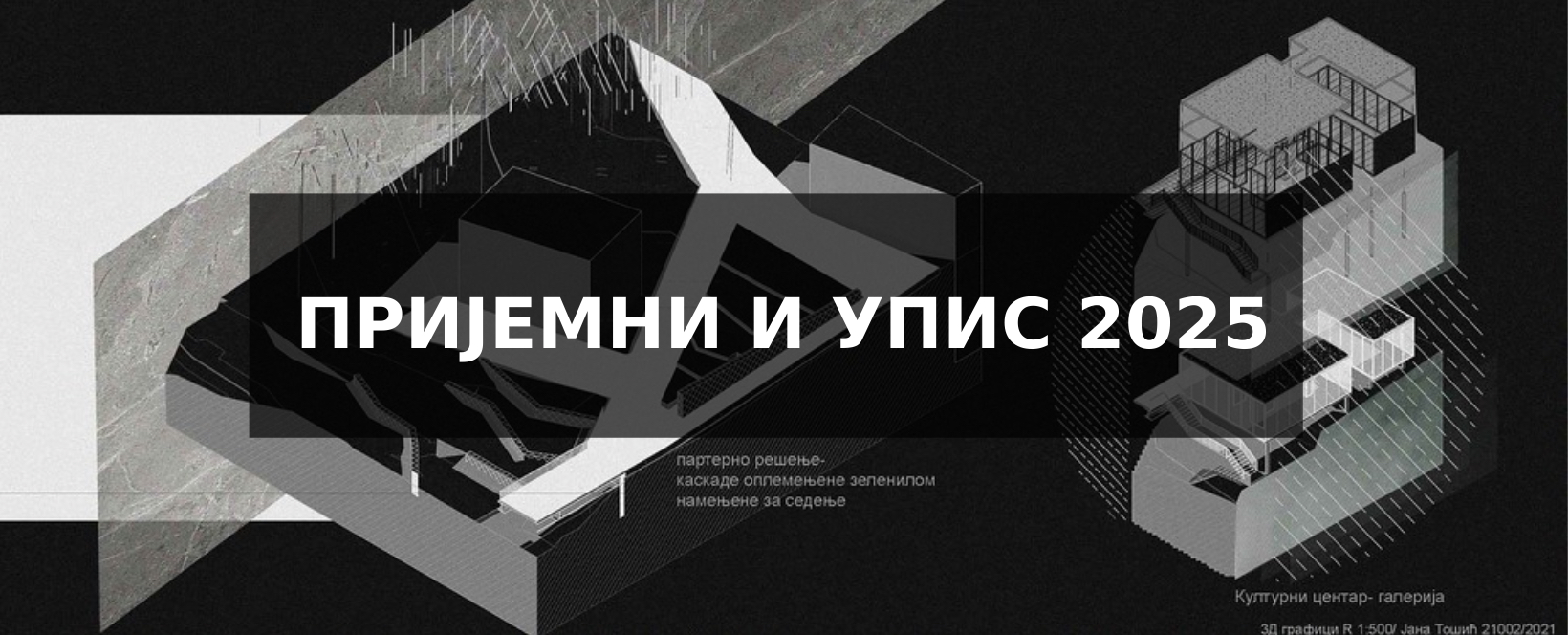 Upis u prvu godinu osnovnih i integrisanih akademskih studija će se obaviti u ponedeljak, 04. avgusta,  utorak 05. avgusta, sreda, 06. avgusta 2025. godine, a prema definisanoj Dinamici upisa, na Arhitektonskom fakultetu.