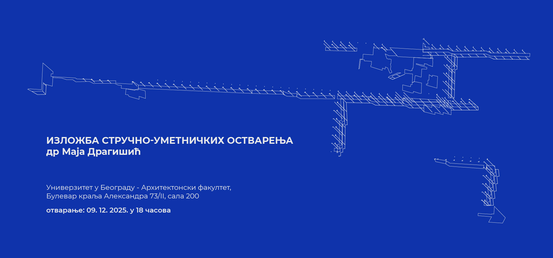 Izložba će biti otvorena u sali 200 na prvom spratu Arhitektonskog fakulteta u Beogradu (Bulevar kralja Aleksandra 73/II) u periodu od 9. do 14. decembra 2025. godine.