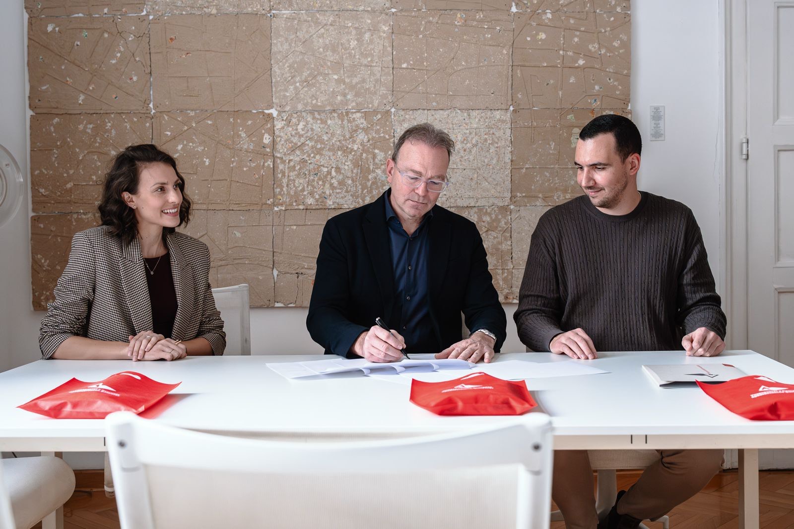 Protokol su potpisali dekan Arhitektonskog fakulteta u Beogradu, arh. Vladimir Lojanica i osnivači Kiparha, Sara i Mihailo Parezanović.