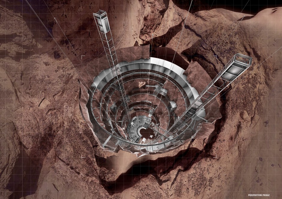 Kao predeo izuzetnih karakteristika, poseban po svojoj morfologiji i istorijskom kontekstu, lokalitet Potpećke pećine je prepoznat kao pogodan za centar grnčarske kolonije. Analizom procesa stvaranja grnčarije i njegovim nadovezivanjem na postojeći program pećine, formirano je jedinstveno prostorno – programsko rešenje naglašavajući specifično iskustvo korisnika u prostoru pećine. Nenarušavajući prirodnu morfologiju i oblikovanje, ključni element projekta predstavlja kontinualni tok kretanja, u vidu proširene komunikacije, koji ispunjava unutrašnjost vertikalne bušotine, povezujući dno pećine sa vrhom brda. Prostorni elementi projekta se formiraju kao ekstenzije glavne komunikacije oblika heliksa, u odnosu na vertikalnu programsku segregaciju na privatne i javne sadržaje. Privatne jedinice obuhvataju zasebne spavaonice u vidu staklenih kapsula umetnutih u brdo i ateljee namenjen umetnicima, dok javni prostori prate oblik glavne komunikacije – grnčarske radionice i izložbeni prostori, koji se formiraju u ošupljenjima brda na proširenoj komunikaciji.
