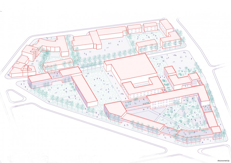 Naš početni koncept se zasniva na formiranju urbanih bašti u okviru postojeće tipologije stanovanja i izgradnji novih, komplementarnih sadržaja sa minimalnim uticajem na postojeću strukturu. Cilj je bio da stvorimo kozavisnu, održivu zajednicu koja proizvodi, prodaje i reciklira hranu u okviru svoje granice. U mom delu predmetne lokacije smo predvidele izgradnju edukacionog centra, koji je pre svega namenjen stanovnicima naše zajednice za edukaciju o poljoprivredi, ali i za sve ostale koji žele da učestvuju. Centar je multifunkicionalnog karaktera i obuhvata prostorije za učenje, praksu , kao i prostore za druženje, odmor i smeštaj posetilaca. Centar ima oblik zatovrenog bloka, i u unutrašnjosti se nalaze velike zelene površine za rad, edukaciju i zabavu.