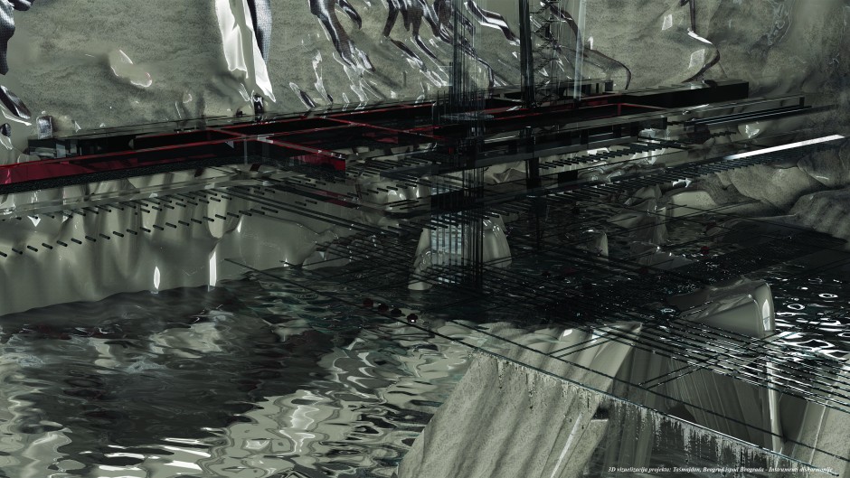 Projekat predstavlja eksperimentalnu infrastrukturu koja teži preispitivanju granica između muzike i arhitekture kroz ukazivanje na specifične ekološke probleme prouzrokovane zagađenjem bukom, kroz percipiranje arhitekture kao instrumenta i kroz postavljanje pitanja skladištenja zvučnog materijala kao jedinstvenog traga ove civilizacije. Tašmajandski Miocenski sprud predstavlja jednu od refenrentnih tačaka u Beogradu koja ostvaruje kontakt sa najstarijom poznatom prošlošću, periodom neogena, i koja ostaje netaknuta kroz nebrojane istorijske tranzicije – stoga se može pretpostaviti da ova lokacija ostvaruje najveći potencijal povezivanja sa najudaljenijim trenutkom u vremenu, gde se zaključuje da označava adekvatno mesto za ostavljanje u vidu zvuka – univerzalnog jezika razmumljivog svim civilizacijama. Sistem osnovnih elemenata programa čine mikrofon, rezonantna kutija, laboratorija zvuka i pogon za njegovo skladištenje. Navedeni elementi komuniciraju kroz tri nivoa javnosti: mikrofon i rezonatna kutija definišu se kao javni prostor, laboratorija zvuka kao polujavni, dok su kapsule za skladištenje potpuno nepristupačne.