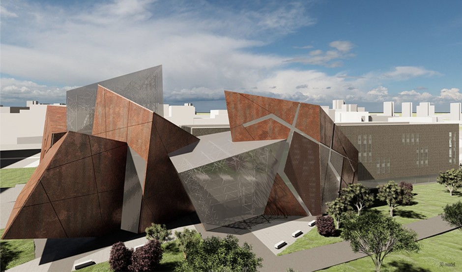 Novoprojektovana struktura zamišljena je kao dekonstruktivistička forma, projektovana od šest geometrijskih elemenata, koja se kontrastnom metodom definisanja odnosi prema nekadašnjem obliku, karakterističnom za epohu brutalizma.
