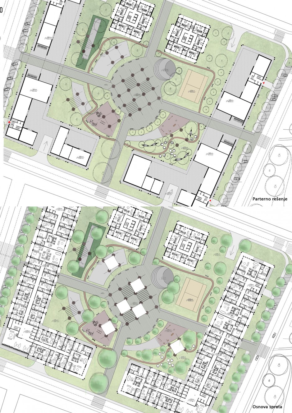 Koncept Slow living za cilj ima usporavanje tempa života i kretanja. To se postiže time što svaki blok ima osnovne javne i komercijalne sadržaje, a na nivou naselja postojala bi tri centra kako bi svaki deo naselja imao jedan u blizini. Takođe, cilj je smanjenje uticaja zagađenja i korišćenja motornih vozila. Na to bi se uticalo velikim brojem pešačkih staza i staza za bicikle koje spajaju okolna stajališta javnog prevoza sa centrima unutar naselja. Drugi način je prisustvo velikih javnih i ozelenjenih površina sa različitim namenama tako da pokrivaju sve starosne dobi i potrebe stanara naselja.