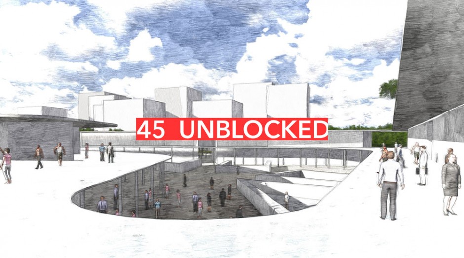 На локацији у Блоку 45 иницијална идеја је била да се, с обзиром да је блок сам за себе “мали град”, оформи нови центар на месту постојећег низа дотрајалих занатских објеката, који су деградирали општи утисак боравка на локацији. Кроз разраду урбанистичког решења, у жељи да се постојећи простор оживи и регенерише, а да задржи дух блока, предвиђен је комплекс од четири објекта, који формирају трг у центру насеља.