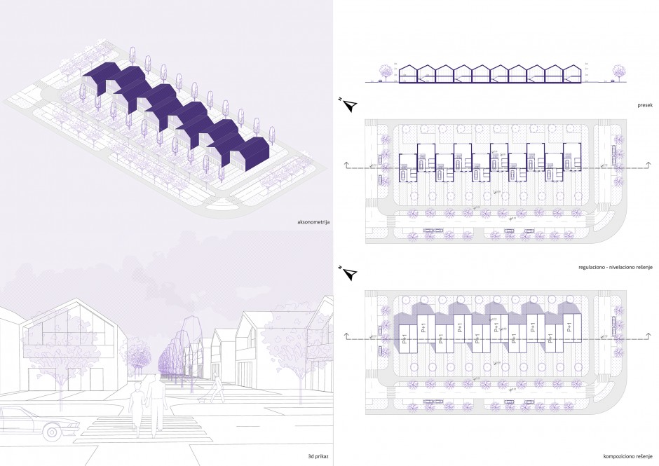 Становање се реализује у виду једноспратних кућа у низу за једнопородично и троспратних зграда за вишепородично становање око паркова. Оваквим позиционирањем он представља велико заједничко двориште и место окупљања станара.
