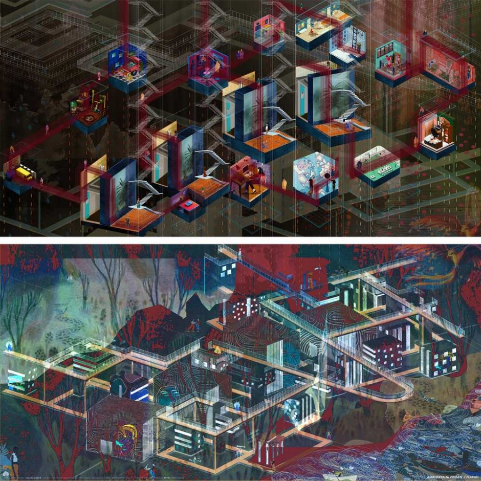 Улаз корисника у едукаторијум овог типа представља визуелни, инстиктивни и умни изазов. Кретање је осмишљено тако да даје привидну слику слободе избора. Испланирано је да корисник све време свог пута хода наметнутом стазом како би успешно прошао све јединице изазова и из едукаторијума изашао као јединка која је освестила цену слободе-себе-своје боје. Изазови су смештени у грађеним структурама и подељени су на 4 степена. Корисник се (изузев ходања) не излаже физичком напору. Пројектантски приступ базиран је на шеми лавиринта који се раслојава и по хоризонтали и по вертикали, док је програмска окосница психоверзума базирана на теми боје; ПСИХОВЕРЗУМ – необично умеће лепог и лаког губљења времена;