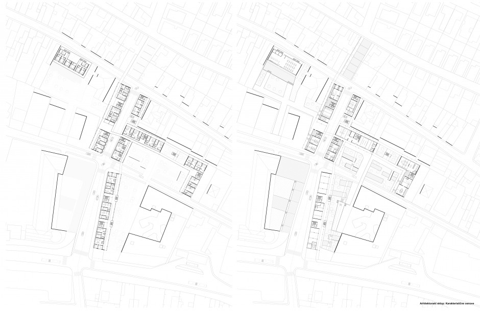 Istraživanje kroz dizajn polazi od prepoznavanja naglašene morfologije terena kao najizraženijeg vizuelnog aspekta lokacije. Koncept se tako zasniva na ideji implementacije platformi i njihovog raslojavanja u odnosu na stambeni sklop. Akcenat je na arhitekturi čija je glavna tema višeporodično stanovanje sa pratećim sadržajem, pa su te platforme poslužile kao otvoreni prostori u okviru blokova. Kako bi se stvorila interakcija između otvorenih prostora i objekata, stambeni sklop je koncipiran kao galerijski. Svi traktovi su identično dimenzionisani, a dinamika u prostoru je postignuta imlementacijom galerija koje su postavljene na višim etažama. Na taj način se formiraju pasarele između objekata, koje omogućavaju nesmetano cirkulisanje kroz blokove, a spoljašnje vertikalne komunikacije, postavljene u okviru objekata i između objekata, omogućavaju efikasno i neometano kretanje između etaža.