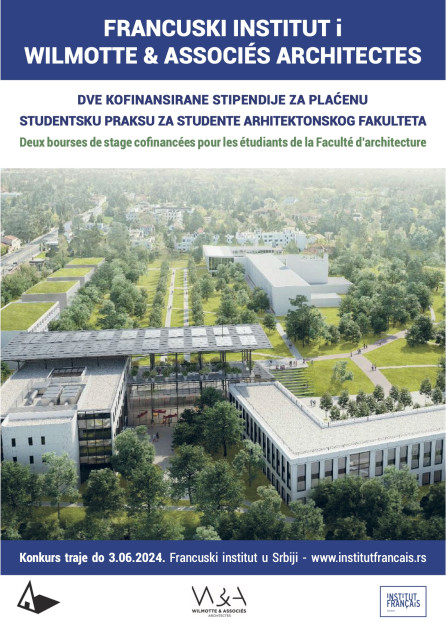 КОНКУРС ЗА 2 КОФИНАНСИРАНЕ СТИПЕНДИЈЕ ЗА СТРУЧНУ ПРАКСУ У ТРАЈАЊУ ОД 6 МЕСЕЦИ ЗА 2024. ГОДИНУ, КОЈЕ ДОДЕЉУЈУ АГЕНЦИЈА WILMOTTE & ASSOCIES ARCHITECTES И ФРАНЦУСКИ ИНСТИТУТ У СРБИЈИ