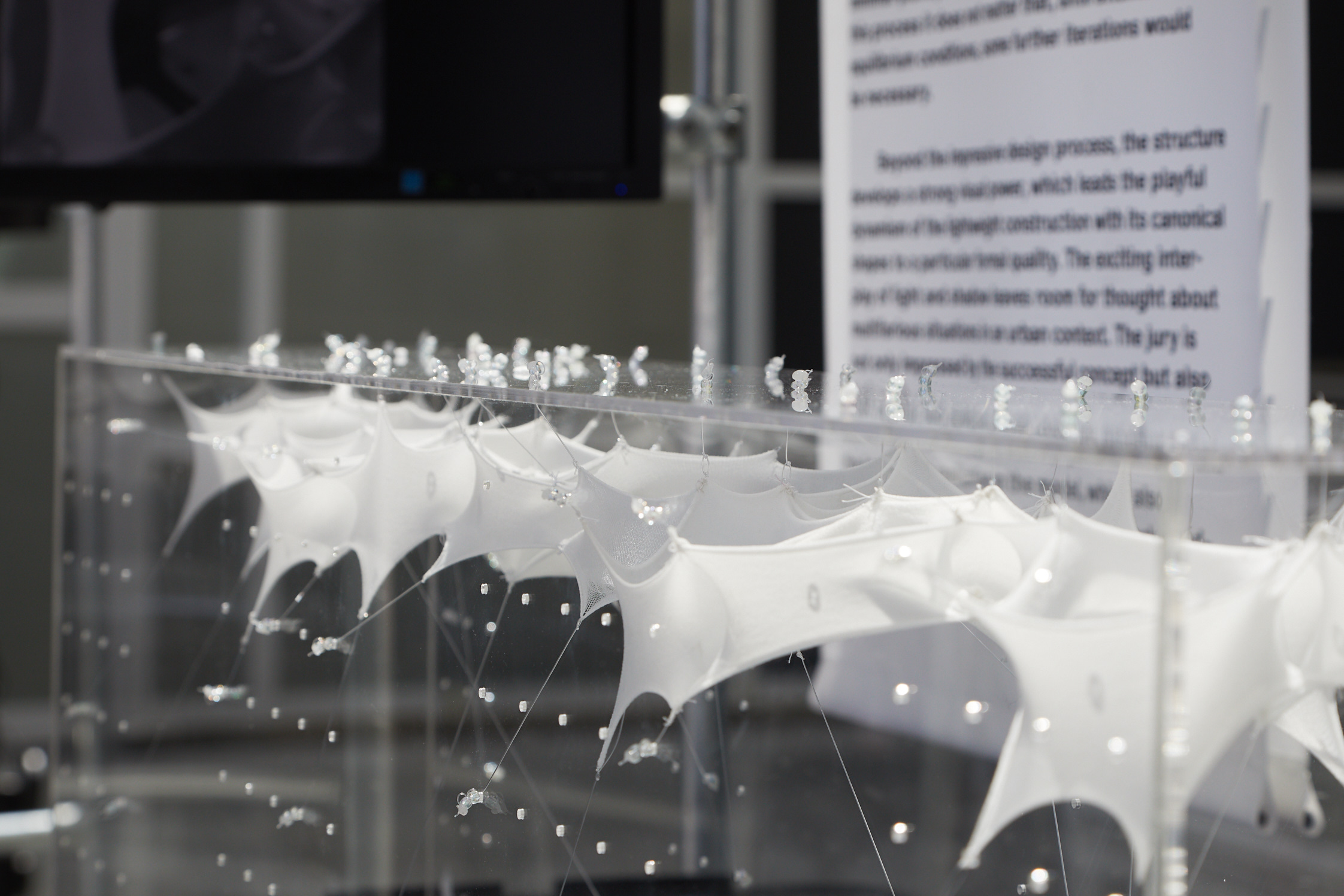 The works submitted for the competition from around the world covered a wide range of topics from the innovative application of materials, through design solutions, construction and assembly concepts to prototype structures. The work of our students Voro-Membrane distinguished itself by the specific designing process of membrane structures based on natural algorithms and the process of growth in which forms are developed under the influence of complex spatial conditions, and in the jury evaluation it is stated: …The jury is not only impressed by the successful concept but also greatly appreciates the consistency of the design idea, mathematical geometry generation, physical formation and the large-scale realisation in the model…