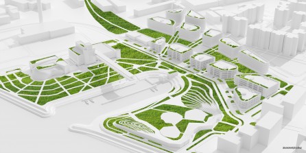 By Архитектонски факултет_Уредник on 17/07/2020ЖИВА ФАБРИКА Наставник: др Александра Ступар, редовни професор Студент: Душан Петровић Тема пројекта: Циљ овог пројекта јесте реактивација дате локације и укључење заједнице у процес рециклаже. Отворени простор око пруге и постојећих зграда постао је место рециклажног и едукационог центра пројекта, у том делу налазе се уређене травнате и пешачке површине, као и каскадиране водене површине. Следећи акценат је на павиљонима, унутар њих оргaнизују се едукациони семинари како за млађе тако и за старије чланове заједнице. Једна од значајних карактеристика јесте поплочање које претвара и складишти енергију за осветљење целокупног подручја, напајање мобилних уређаја, електричних бицикала, и стварање специфичне ноћне слике пројекта.У складу са рециклажом, на одређеним местима локације постојали би контејнери за прикупљање рециклажног материјала. Даљим поступком би се тај материјал деградирао и реактивирао у склопу павиљона и урбаног мобилијара пројекта. Везано за одрживост, постојали би још и соларни панели смештени на крововима зграда, као и кровне баште за релаксацију станара.