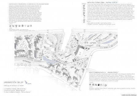 By Архитектонски факултет_Уредник on 17/07/2020ПРИРОДОМ ИНСПИРИСАНИМ РЕШЕЊИМА КА ИДЕНТИТЕТУ КУЛТУРЕ И МЕСТА Наставник: др Ксенија Лаловић, ванредни професор Студент: Миа Павловић, Јелена Пецић, Бојана Перенчевић Тема пројекта: Захваљујући бројним анализама спроведеним на предметном подручју, дошле смо до поставке концепта који се заснива на културолошким и социолошким принципима одрживости. Главни фокус пројекта представља креирање нове културне зоне на подручју Марине Дорћол. Преузимањем и концентрисањем већ постојећег културног садржаја у Београду са додатком новог, који на иновативне начине привлачи људе, формирале смо нови културни дистрикт, који својим програмом и пропратним садржајем људе задржава на локацији. Један од затечених проблема на локацији представљао је неадекватан садржај у оквиру старе индустријске зоне, обзиром на добру позицију у граду, одлучиле смо да она буде пренамењена у ново стамбено насеље које би представљало баланс између густе и традиционалне матрице Дорћола и разиграног амбијента културног дистрикта. Дизајном отвореним јавних простора у маниру одрживости ово стамбено насеље у потпуности одише иновативним идејама које се прожимају кроз сва три дела локације. Ову повезаност употпуњује потез Линијског парка који преузима програме свих делова локације које обухвата и обогаћује их зеленим амбијентом. -