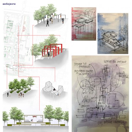 By Архитектонски факултет_Уредник on 17/07/2020ЖИВА ФАБРИКА Наставник: др Александра Ступар, редовни професор Студент: Сара Адиљи Тема пројекта: ЦИЉ - Створити центар који би представљао место где се повезују и уливају садржаји културно-уметничко-образовних установа града а истовремено место које прихвата и пружа могућности онима који имају потребу да се искажу. ЕКО БЛОК - увођење еко линије кроз локацију,рециклажа,уређене зелене површине, комфор у отвореном простору. Подземне гараже - car free зона, приступачност садржаја на пешачком растојању, смањење визуелног загађења, чист ваздух, смањење гужви у саобраћају. Еколошки аспект - зеленило присутно у сваком блоку, спуштање аутомобила у подземне гараже свуда где је то могуће, мрежа бициклистичких стаза, обновљиви извори енергије. Предности - повезаност свих културно - уметничких садржаја на једном месту - простор за едукацију, истраживање, уметност. Мултифункционална зона - простор за изложбу, пијацу, штандове креативних радионица, плес, концерте, предавања на отвореном. Културни центар је настао регенерацијом некадашње Термоелектране, задржана је структура и додате су челичне конструкције које симулирају некадашњи индустријски простор, а данас би биле место за радионице,изложбе на отвореном. -