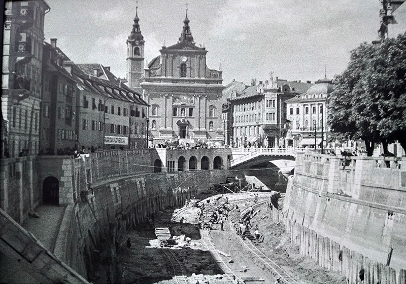 Betoniranje struge Ljubljanice, 1934. | Foto: Petar Naglič