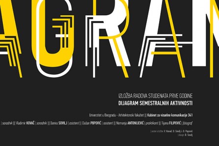 By Архитектонски факултет on 29/08/2017/ до краја септембра 2017, Галерија ГрАФ / Позивамо Вас на изложбу селектованих радова студената прве године Основних и Интегрисаних академских студија – Дијаграм. Овом изложбом је представљен део испитног задатка рађеног на предмету Архитектонска графика, чији је циљ био да се кроз инвентиван и редукован графички израз, у форми дијаграма, прикажу одређене семестралне активности настале у процесу реализације предметних задатака. -