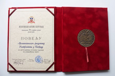 Istorijski arhiv Beograda dodelio Arhitektonskom fakultetu najviše priznanje Povelju