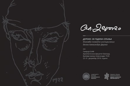 By Arhitektonski fakultet_Urednik on 21/12/2018/ 22-31.12.2018. / Pozivamo Vas na izložbu plakata inspirisanih delom Aleksandra Deroka, pod nazivom: "DEROKO: 30 GODINA SEĆANJA" koja će biti priređena u Galeriji GrAF na Arhitektonskom fakultetu. Povodom obeležavanja trideset godina od smrti Aleksandra Deroka (1894-1988), istaknutog arhitekte i profesora naše škole, Kabinet za vizuelne komunikacije 341 realizovao je projekat izložbe serije plakata inspirisanih likom i delom ovog izuzetnog stvaraoca. -